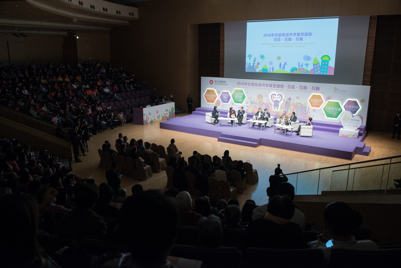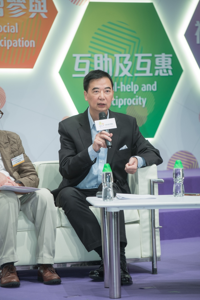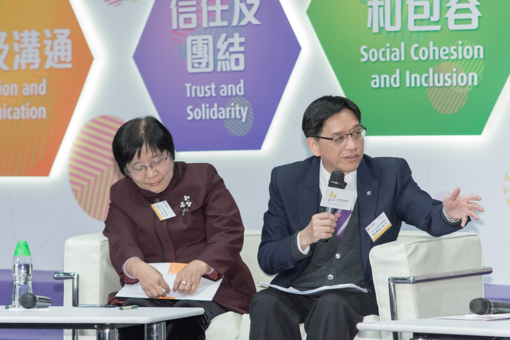 论坛由基金委员会推广及发展小组副主席司徒永富博士,以及基金委员丁惠芳博士主持。司徒博士先由一件童年趣事说起:“我在屋邨长大,邻居之间真的充满互信、互助、交互。有次邻居到处‘揾仔’,遍寻不获之际,谁知那小孩竟在我家的摺枱下睡着了!原来他不知何时悄悄进来,偷饮啤酒后睡着了!”