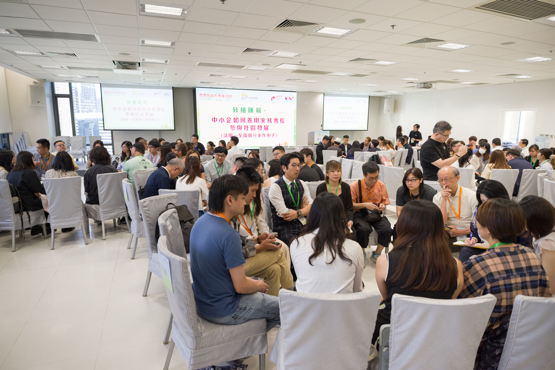 席间参加者亦就中小企如何善用业务专长参与社区发展作分组交流,并以不同行业为例分享各组的讨论成果。